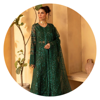 Presenting the pinnacle of opulent grandeur, this floor-length emerald green velvet gown is a true heirloom piece from our couture collection. The rich, deep velvet is entirely blanketed in intricate...