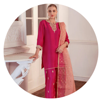 Elevate your style with this intriguing and elegant hot pink silhouette. The ensemble features exquisite embroidered details on the neckline, sleeves and bottom with shade of pink, adding a touch...