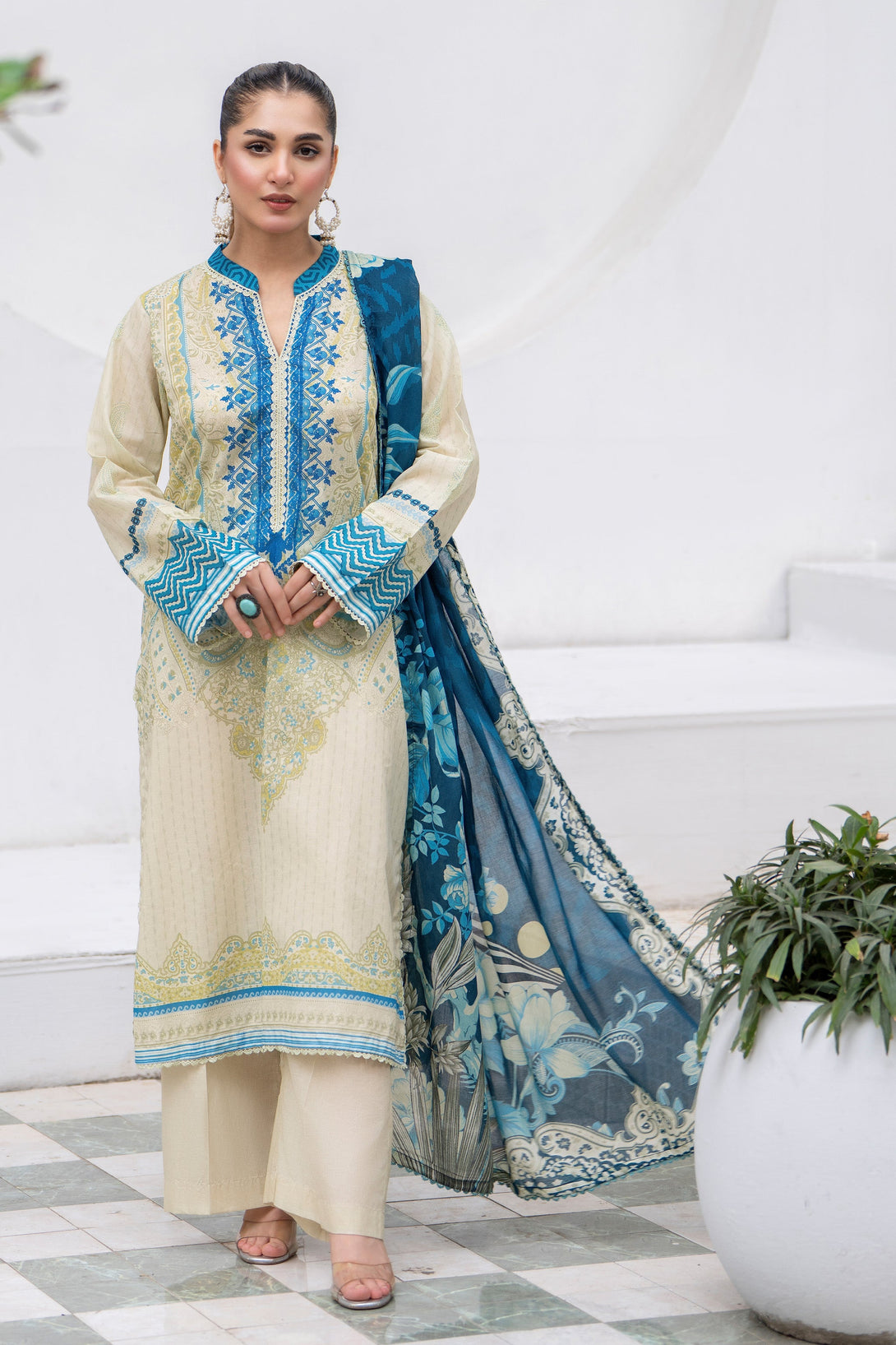 3 Piece Ivory Premium Lawn